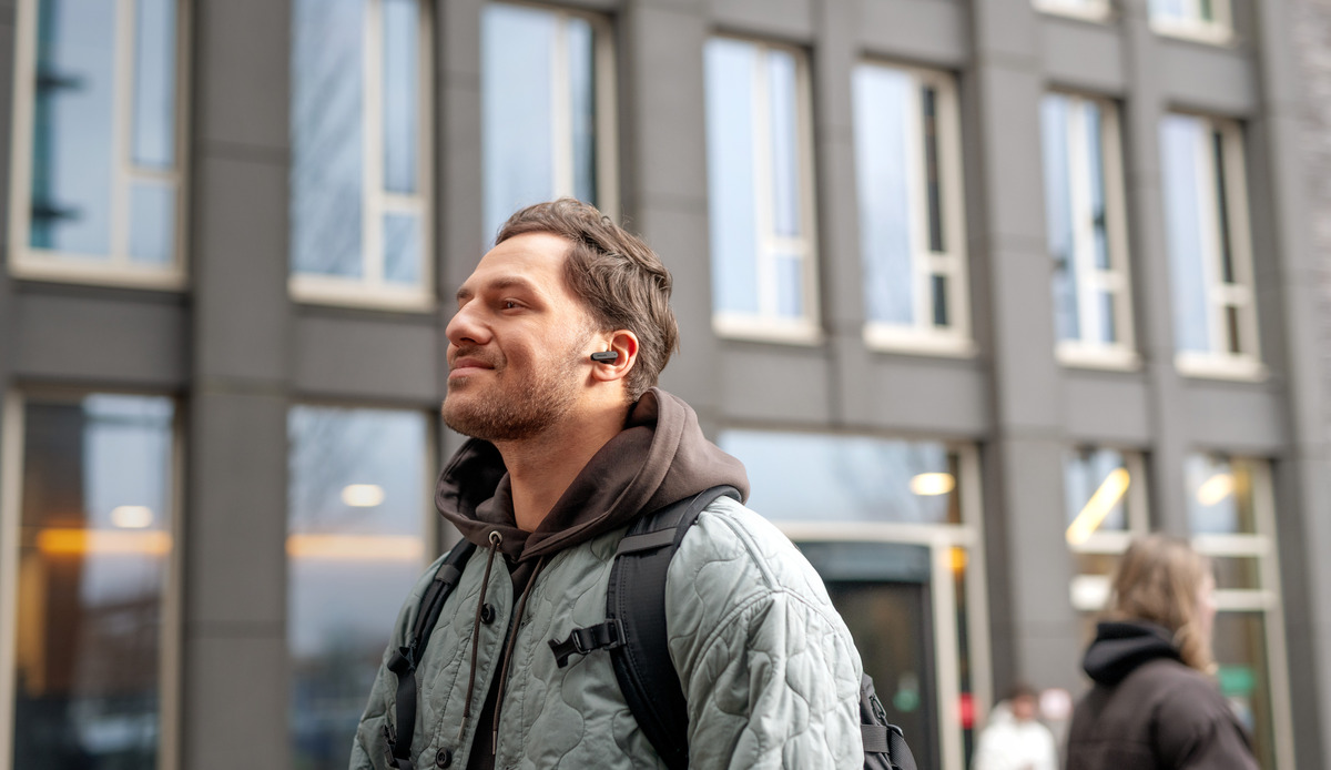 Če niste ljubitelj občutka čepkov v ušesnem kanalu, so te popolnoma brezžične slušalke kot nalašč za vas. Ušesna čepka se prilegata ušesom, tanka držala pa omogočajo, da ostanejo varno na svojem mestu. Ker v ušesnem kanalu ni ušesnih blazinic, tudi ni občutka pritiska, kljub dlje trajajočemu poslušanju.