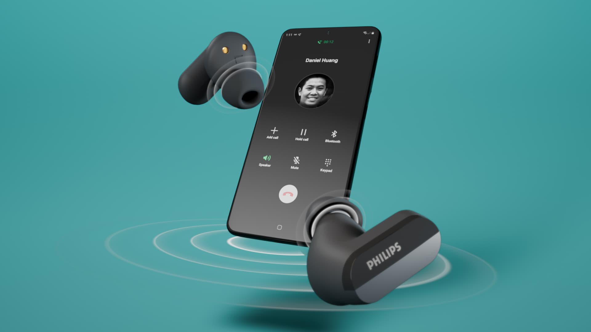 Funkcija za odpravljanje šumov utiša zunanje šume, npr. zaradi vetra, zato se boste lahko povsem posvetili priljubljenim melodijam ali klicem. Lahko jo pustite, da deluje samodejno, ali jo nastavite z aplikacijo Philips Headphones. Želite slišati, kaj se dogaja okoli vas? Tapnite slušalke, da vklopite način Awareness Mode.