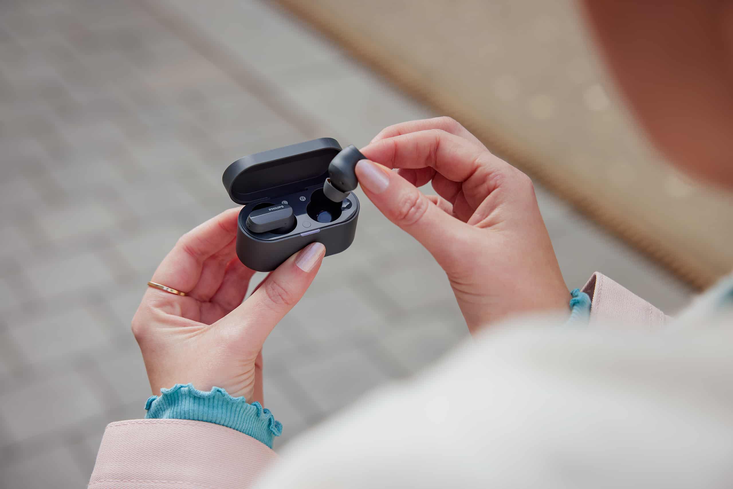 Od doma se odpravite z majhnim polnilnim etuijem v žepu in slušalke bodo vedno pripravljene za vas. Ko jih ne boste uporabljali, se bodo v njem dobro zaščitene polnile, pri čemer mono način pomeni, da lahko uporabljate le eno slušalko, med tem ko se druga polni.