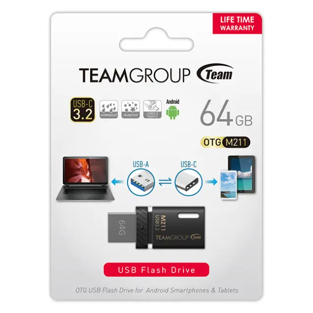 M211 je USB ključek z dvema vmesnikoma s funkcijo OTG (On The Go).