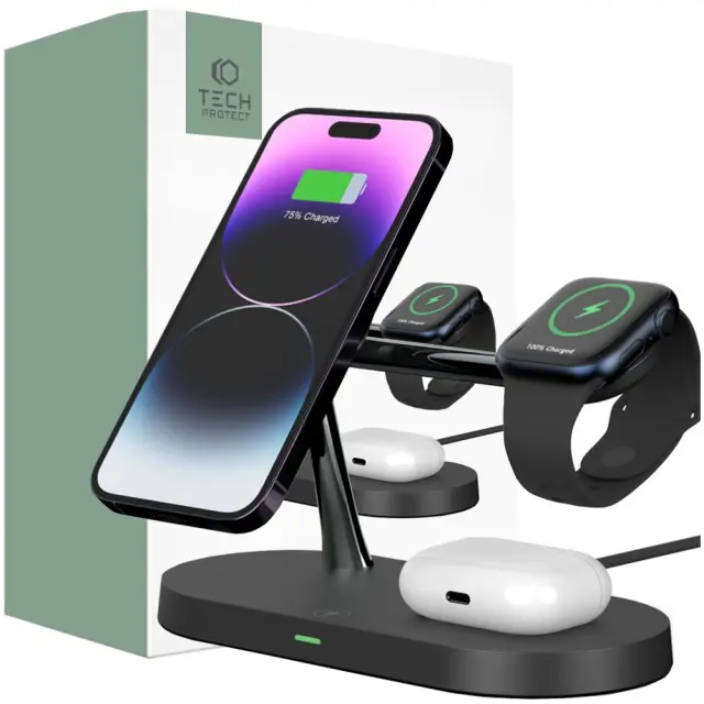 TECH-PROTECT A12 3V1 MAGNETNI ZA BREZŽIČNI POLNILEC MAGSAFE ZA IPHONE ČRN