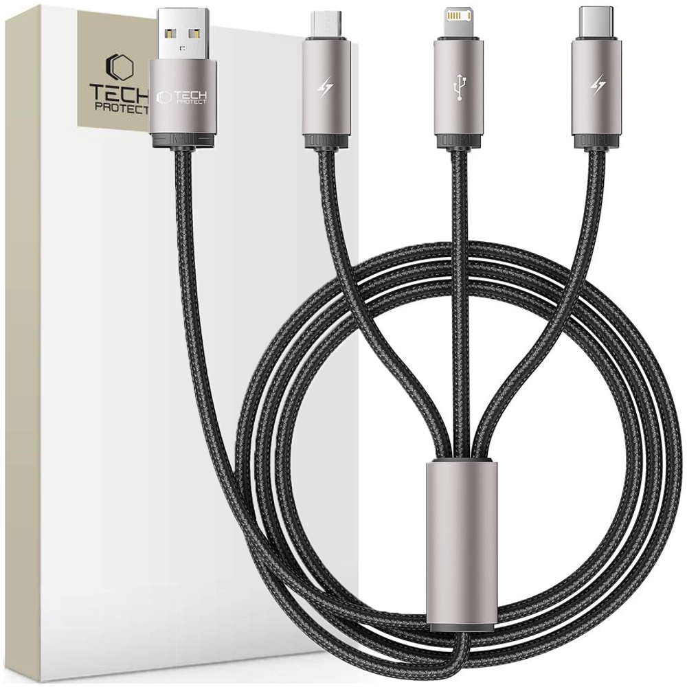Predstavljajte si, da imate kabel, ki se takoj prilagodi vašim potrebam. S Tech-Protect Ultraboot 3in1 dobite 3 v 1 - Lightning, Type-C in Micro-USB v enem kablu. Zdaj sta polnjenje in prenos podatkov enostavnejša, hitrejša in priročnejša kot kdaj koli prej. Zaupajte tehnologiji, ki gre v korak s časom. Zahvaljujoč dolžini 100 cm ga imate vedno pri roki, ne glede na to, kje ste – v službi, v avtu ali na potovanju.
