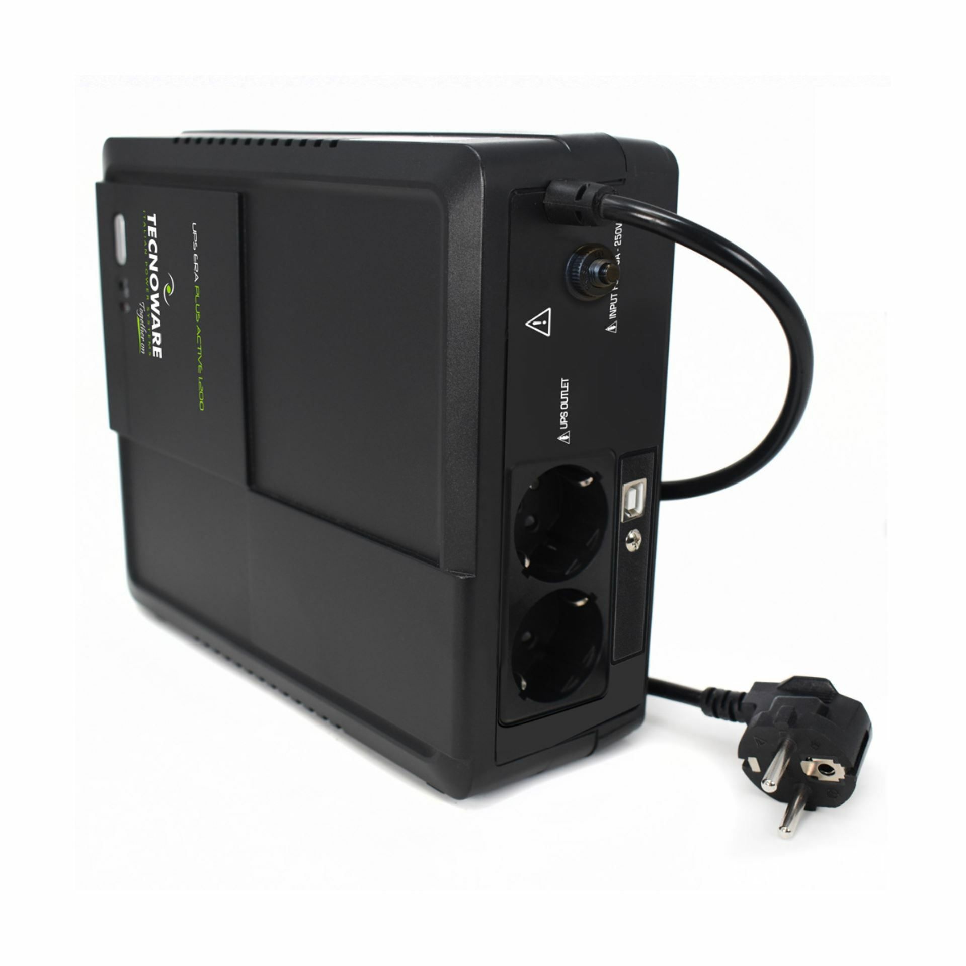 Tecnoware UPS ERA PLUS ACTIVE 1200VA je sistem brezprekinitvenega napajanja za računalniške naprave z 1200VA/840W nazivne moči. Opremljen je z dvema "Šuko" vtičnicama. Ponuja do 40 minut delovanja z manjšimi porabniki brez napajanja oz. odvisno od obremenitve.