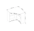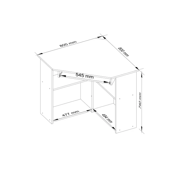 Kotni pisalni miza, ki vam omogoča, da v celoti izkoristite prosti prostor v prostoru. Dobro bo služila v otroških sobah, kot element domače pisarne ali podjetja. Predlagani vzorec je izdelan iz zanesljive laminirane plošče debeline 16 milimetrov. Da bi povečali trajnost že tako trdne konstrukcije, so na vidnih robovih uporabljeni ABS robovi. Model ima veliko prostega prostora za kakršno koli ureditev. Konstrukcija vključuje predal za tipkovnico, ki se izvleče na kovinskih valjčnih vodilih, in štiri police za knjige, dodatke ali opremo.