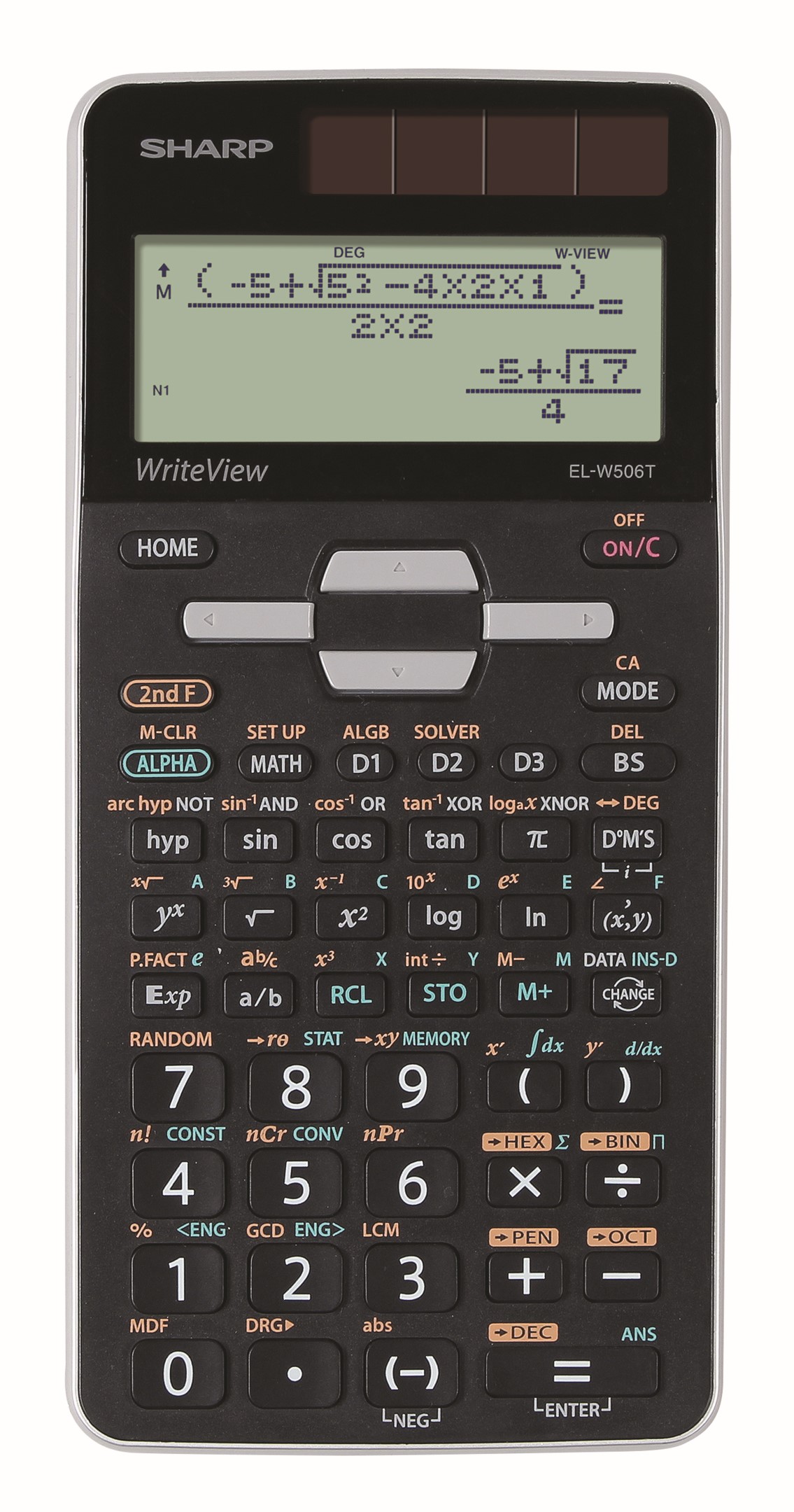 Tehnični kalkulator SHARP opravlja 640 naprednih znanstvenih funkcij. Ima velik 4 vrstični matrični zaslon s 96 x 32 znaki, ki prikaže enačbo enako, kot je zapisana v knjigi (Write-View). Zaslon je zavarovan z akrilno ploščico, ki zboljša kontrast zaslona in ga obenem dodatno zaščiti. Prikaz rezultata kot ulomek, iracionalno ali decimalno lahko enostavno spreminjamo s pritiskom na 1 tipko. Poleg tega ponuja kalkulator 9 neodvisnih spominov, statistične analize, slučajnostjo funkcijo, 3 programa bilne tipke za najpogosteje uporabljane funkcije, način učenja "Drill". Funkcija Multi-Line Playback skrbi, da uporabniki vnesene znanstvene enačbe pregledajo in jih tako tako lažje in pravilno rešijo. Kalkulator ima trpežne plastične tipke, čvrst drsni pokrovček pa ščiti kalkulator pred poškodbami. Ob daljšem nedelovanju se kalkulator sam ugasne. Baterija: 1 x LR44.