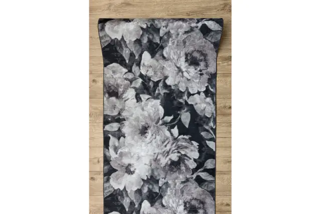 Tekač gumiran LOTUS BOUQUET 52901 Rože siva / bež pralna protizdrsna 100 100x880 cm