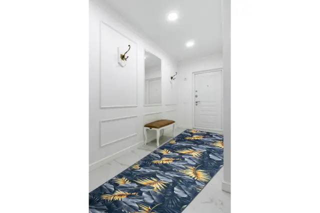 Tekač gumiran LOTUS FERNS 45270 Listi siva / zlato pralna protizdrsna 80 80x500 cm