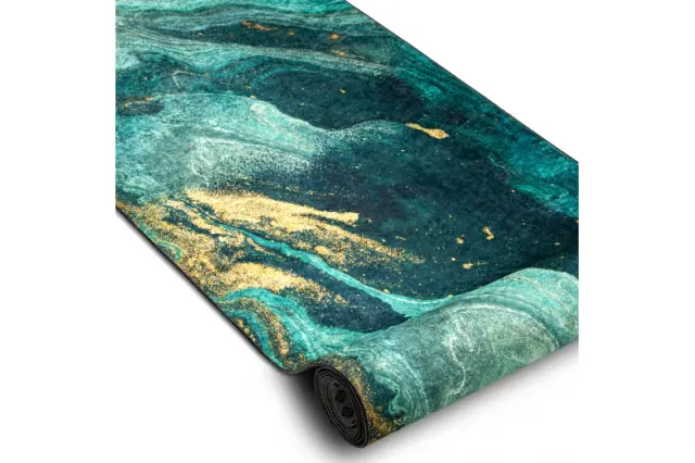 Tekač gumiran LOTUS SHADOWS 37750 Abstrakcija zelena / zlata pralna protizdrsna 100 100x260 cm