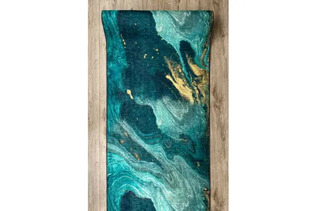 Tekač gumiran LOTUS SHADOWS 37750 Abstrakcija zelena / zlata pralna protizdrsna 100 100x980 cm