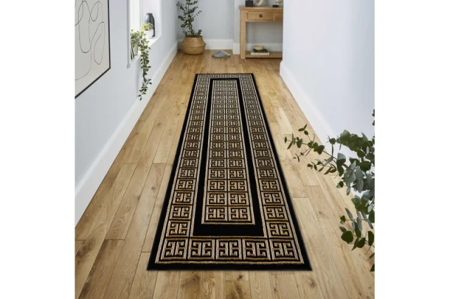 Tekač, tekač ALLURE 1968 Grški ključ, okvir - strukturna, elegantna, glamur črna / zlato 70x200 cm