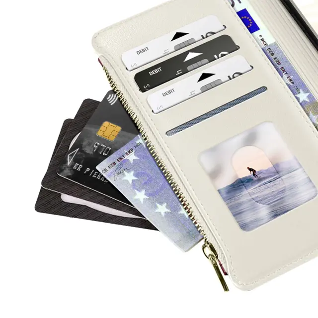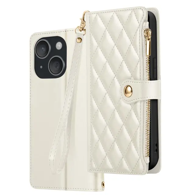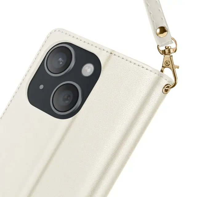 Teksturirano Zadeva za iPhone 15 z držalom za video in držalom za kartice, Bež