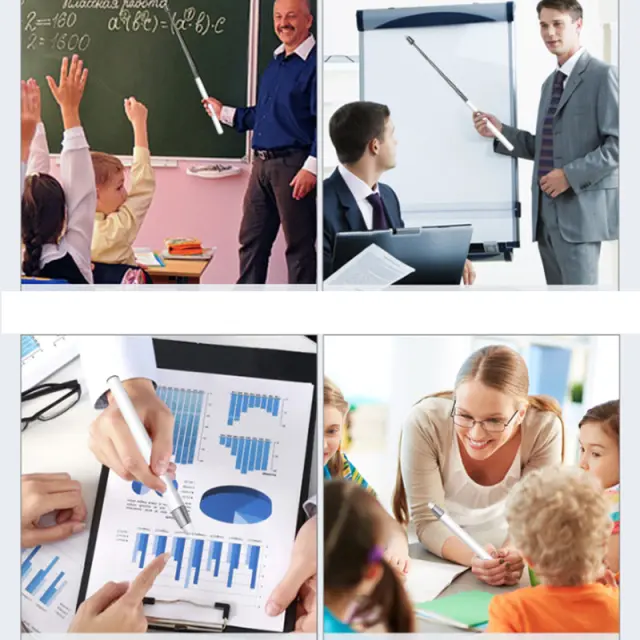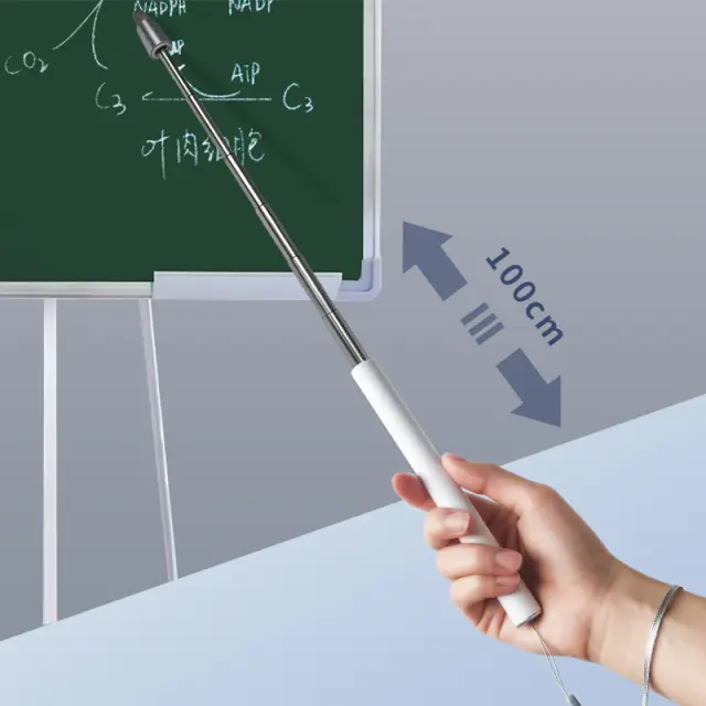 Vsestransko orodje za predstavitev: Ta teleskopski kazalnik je popoln za različne nastavitve, vključno z učilnicami, pisarnami, razstavami in predstavitvami. Njegova raztegljiva zasnova vam omogoča enostavno kazanje informacij na belih tablah, zaslonih ali prikazovalnikih z udobne razdalje. Elegantna črna barva zagotavlja profesionalen videz, zaradi česar je primeren za vsako okolje. Ne glede na to, ali ste učitelj, predavatelj ali trener, je ta kazalnik bistveno orodje za učinkovito komunikacijo in sodelovanje s svojim občinstvom.