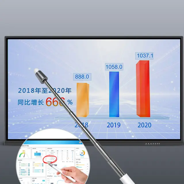 Združljivost s kapacitivnimi zasloni na dotik: Ta kazalnik je zasnovan s kapacitivno konico in je popolnoma združljiv s široko paleto naprav z zaslonom na dotik, vključno s pametnimi telefoni, tablicami, interaktivnimi belimi tablami in vse-v-enem napravami. Ta funkcija vam omogoča nemoteno preklapljanje med tradicionalnim kazanjem in interaktivno uporabo zaslona na dotik. Odzivna konica zagotavlja natančen in precizen nadzor na dotik, zaradi česar je idealen za pisanje, risanje in navigacijo po digitalnih zaslonih. Uživajte v priročnosti enega samega orodja za fizične in digitalne predstavitve.