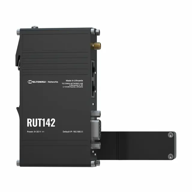 RUT142 je kompakten DIN industrijski Ethernet usmerjevalnik, ki povečuje varnost z ločevanjem omrežij za končne naprave. Opremljen z RS232 serijskim vmesnikom, dvema Ethernet priključkoma, Wi-Fi 4, ter industrijskimi protokoli kot so Modbus, DLMS, DNP3 in OPC UA, zagotavlja zanesljivo povezljivost.