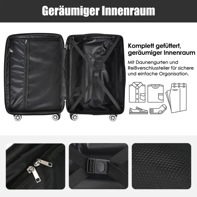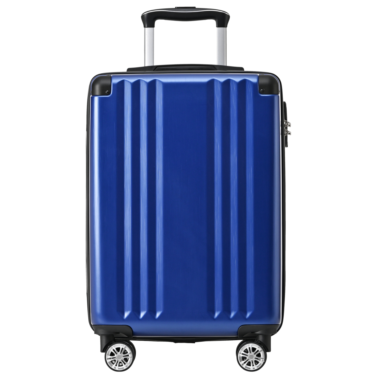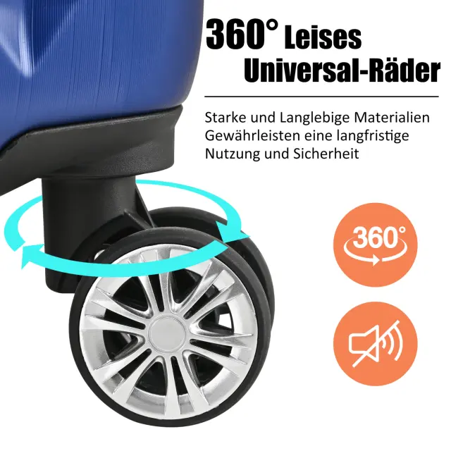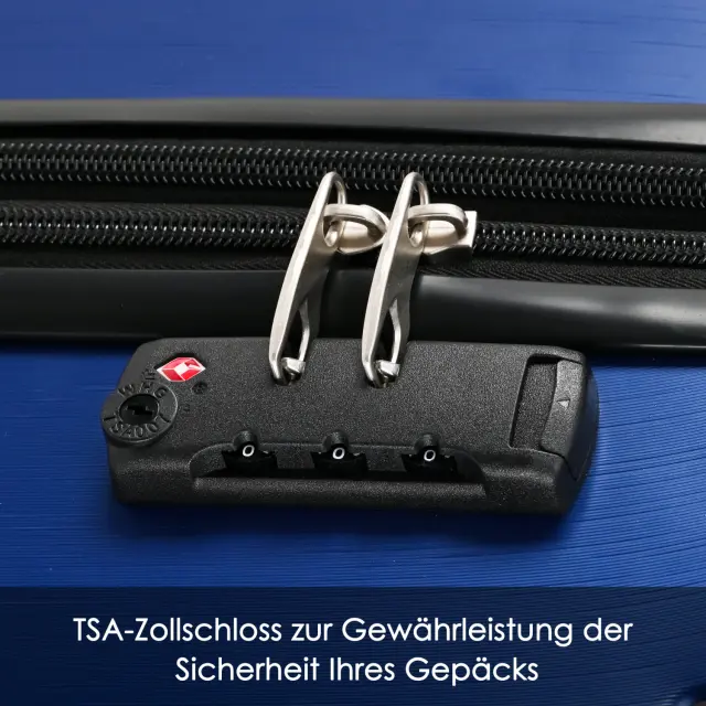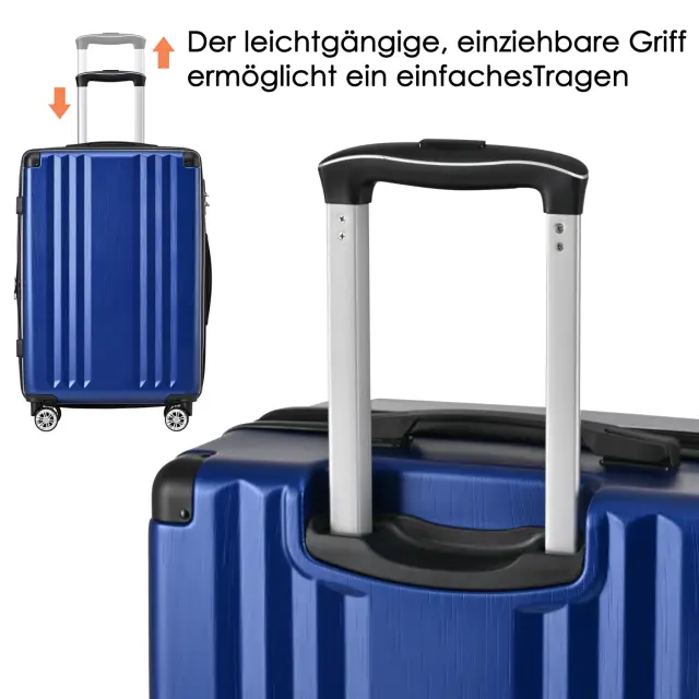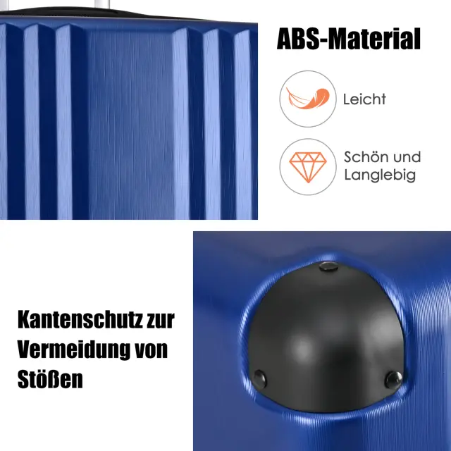 Temno moder kovček za voziček iz trdega ABS materiala s TSA ključavnico, 4 kolesa, 56,5 x 37,5 x 22,5 cm.