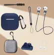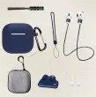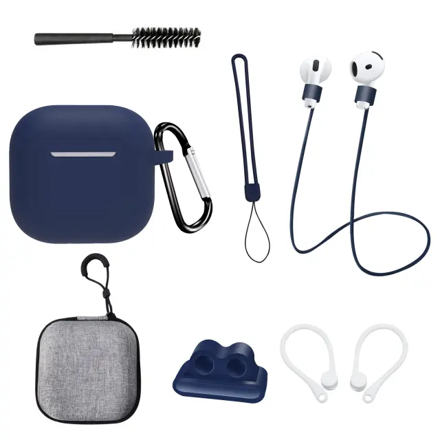 Elegantno in funkcionalno: Elegantna temnomodra barva doda vašim AirPods pridih prefinjenosti. Komplet vključuje tudi trak za zapestje za enostavno nošenje in čistilno krtačko, s katero bodo vaše slušalke vedno brezhibno čiste.