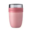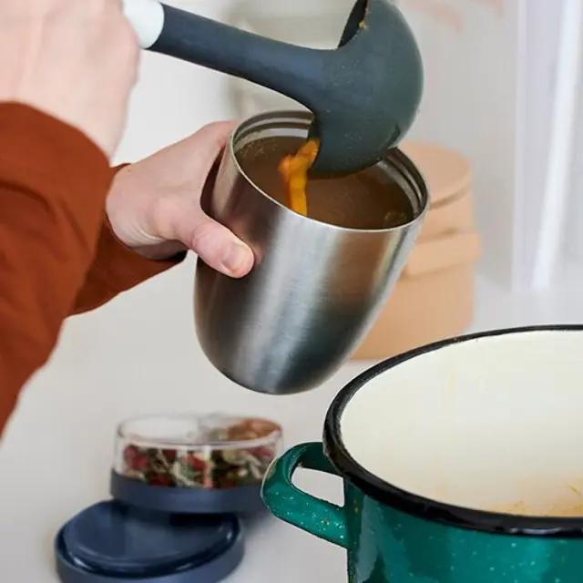 Se odpravljate v službo ali na izlet, načrtujete daljše potovanje in si želite privoščiti hladen jogurt ali toplo domačo zelenjavno juho? Termo posodica Ellipse je idealna za vas, saj omogoča prenašanje in shranjevanje hrane. Sestavljena je iz dveh delov: termo posodo z dvojno steno s prostornino 500 ml in posodico s prozornim pokrovom prostornine 200 ml. Termo posodica je obdana z nerjavečim jeklom in ohranja hrano toplo od 6-8 ur, hladno pa do 12 ur. Izolirana posoda je 100% nepredušna. Kompaktna velikost in majhna teža vam bo omogočila, da to vsestransko posodo vzamete s seboj v svojo torbico, nahrbtnik, torbo in uživate v svoji najljubši jedi, kjerkoli želite. Pomijte jo ročno. Ni primerna za uporabo v mikrovalovni pečici in zamrzovalniku. Izdelano na Nizozemskem. PRIPOROČAMO: Preden v posodo naložite hrano jo prej napolnite z vročo vodo in pokrijte, da se posoda dobro segreje, šele nato vstavite vanjo vroča živila.