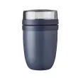 Se odpravljate v službo ali na izlet, načrtujete daljše potovanje in si želite privoščiti hladen jogurt ali toplo domačo zelenjavno juho? Termo posodica Ellipse je idealna za vas, saj omogoča prenašanje in shranjevanje hrane. Sestavljena je iz dveh delov: termo posodo z dvojno steno s prostornino 500 ml in posodico s prozornim pokrovom prostornine 200 ml. Termo posodica je obdana z nerjavečim jeklom in ohranja hrano toplo od 6-8 ur, hladno pa do 12 ur. Izolirana posoda je 100% nepredušna. Kompaktna velikost in majhna teža vam bo omogočila, da to vsestransko posodo vzamete s seboj v svojo torbico, nahrbtnik, torbo in uživate v svoji najljubši jedi, kjerkoli želite. Pomijte jo ročno. Ni primerna za uporabo v mikrovalovni pečici in zamrzovalniku. Izdelano na Nizozemskem. PRIPOROČAMO: Preden v posodo naložite hrano jo prej napolnite z vročo vodo in pokrijte, da se posoda dobro segreje, šele nato vstavite vanjo vroča živila.
