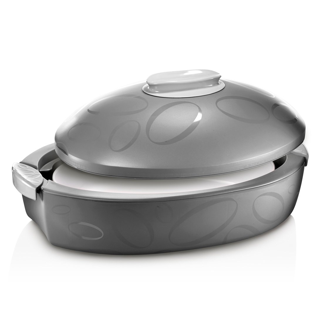 OVALNA TERMO POSODA S PEKAČEM ENJOY blagovne znamke EVVIVA je izdelana iz kvalitetne plastike z dvojno termo izolirano steno, ki zagotavlja, da ostane hrana v posodi topla ali hladna do 4 ure.
