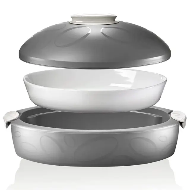 Porcelanast pekač je primeren za peko vseh vrst hrane v klasični pečici. Ne uporabljajte ga na plinu, ognju ali v mikrovalovni pečici. Termo posode in pokrova, nikoli ne postavljajte na vir energije ali v pečico.
