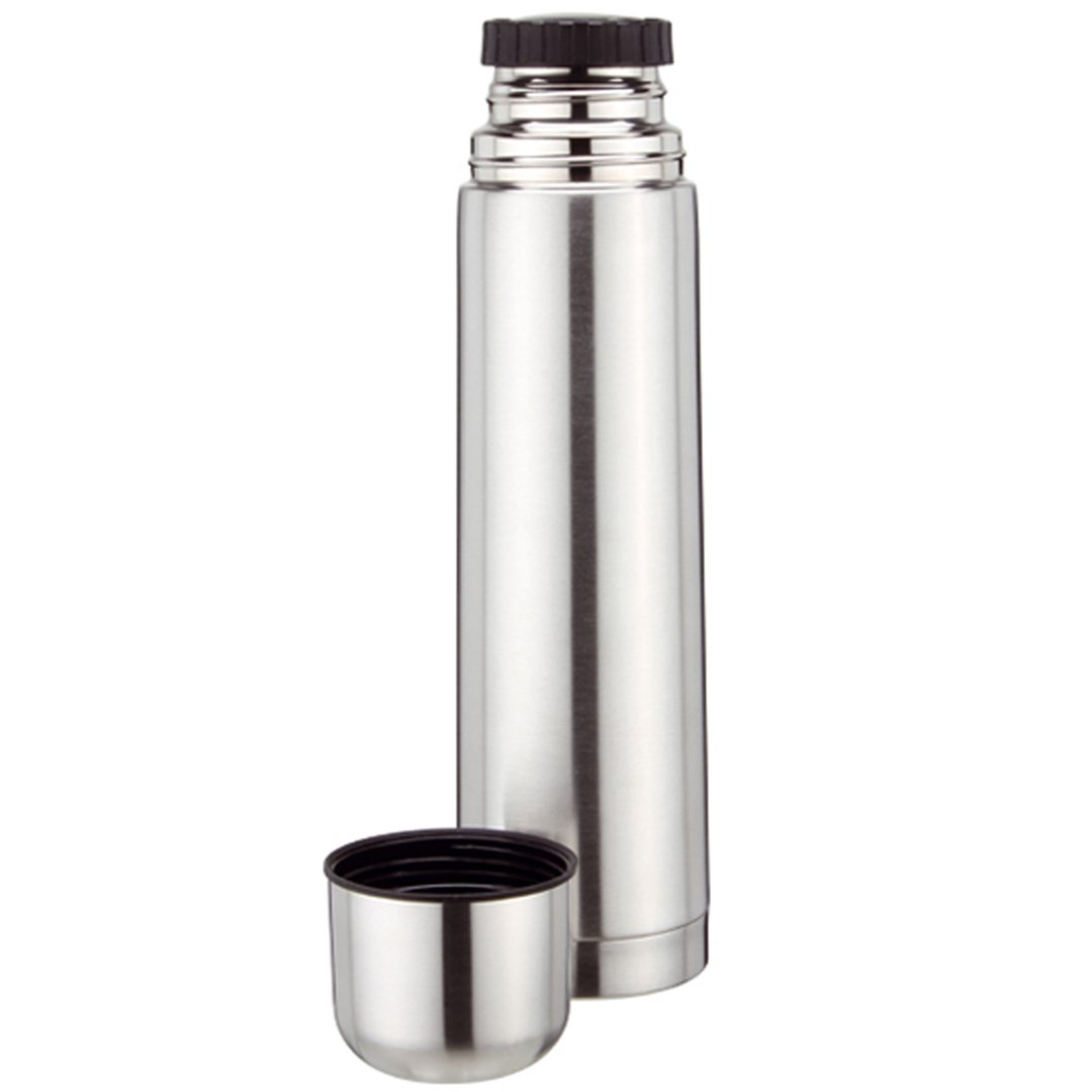 EVA TERMO STEKLENICA Z NAVOJEM 1 l z dvojno steno iz nerjavečega jekla je primerna za shranjevanje vročih in hladnih napitkov. Navojni pokrov hermetično zapira steklenico in je uporaben tudi kot skodelica.