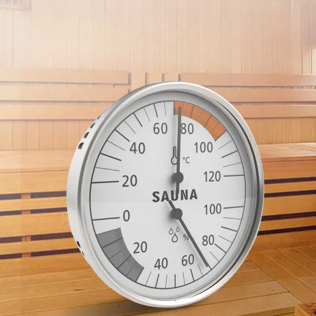 Natančna temperatura in vlažnost: Ta termometer za savno zagotavlja natančne odčitke temperature in vlažnosti, kar zagotavlja udobno in varno izkušnjo savnanja. Z jasnim in lahko berljivim zaslonom lahko enostavno spremljate razmere v savni.