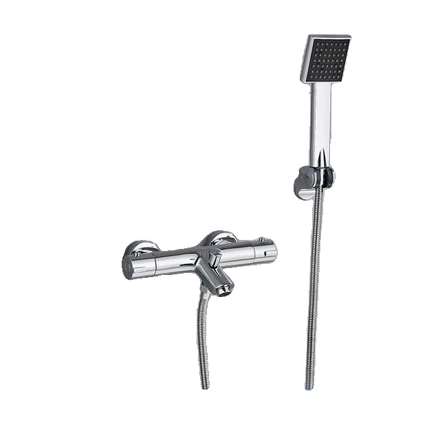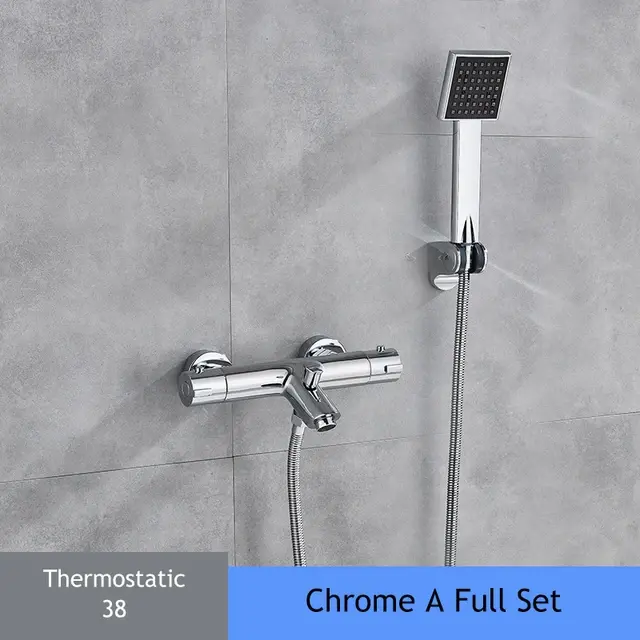 Termostatska mešalna ventil za tuš, stenska montaža, dvojno upravljanje, Krom A Celoten Nabor