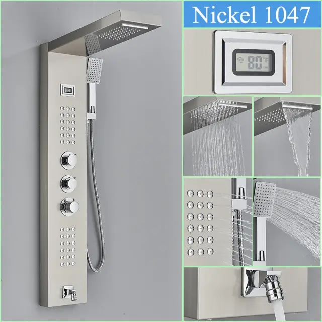 Termostatska tuš plošča, digitalni prikaz, masažni curki, brušeni nikelj 1047