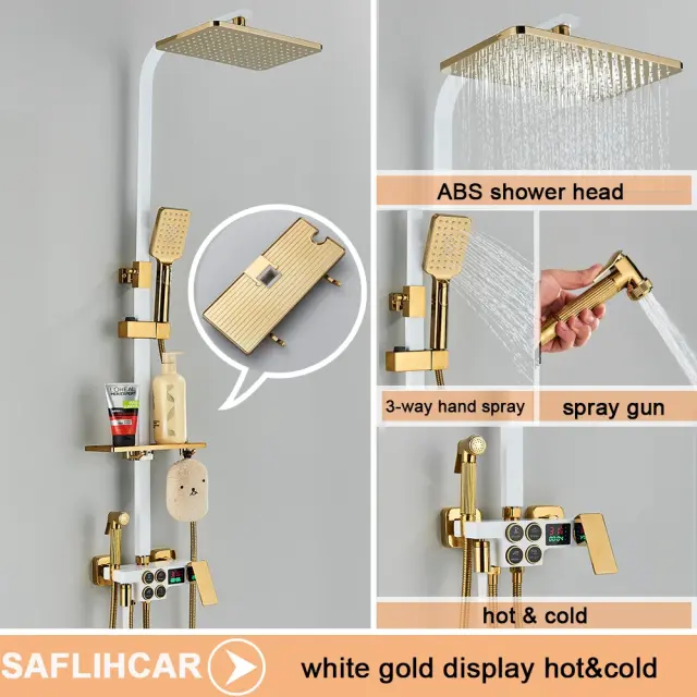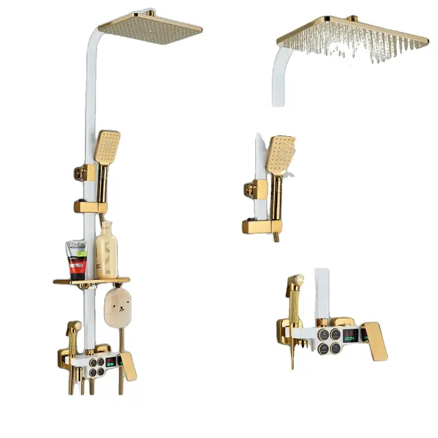 Termostatski tuš pipa set, trpežna medenina, enojna ročna kontrola, A bela zlata 4DCH