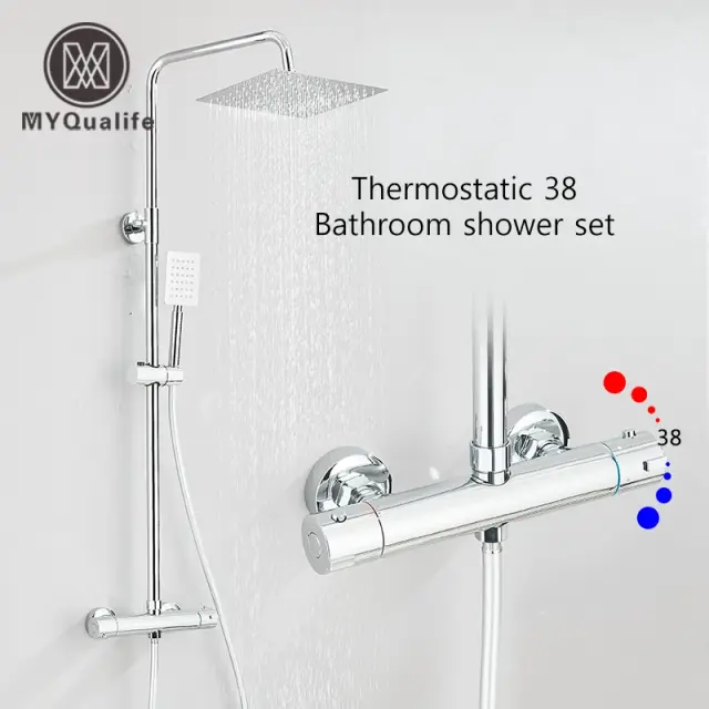 Termostatski tuš pipni set, kromirana obdelava, dvojni ročaj