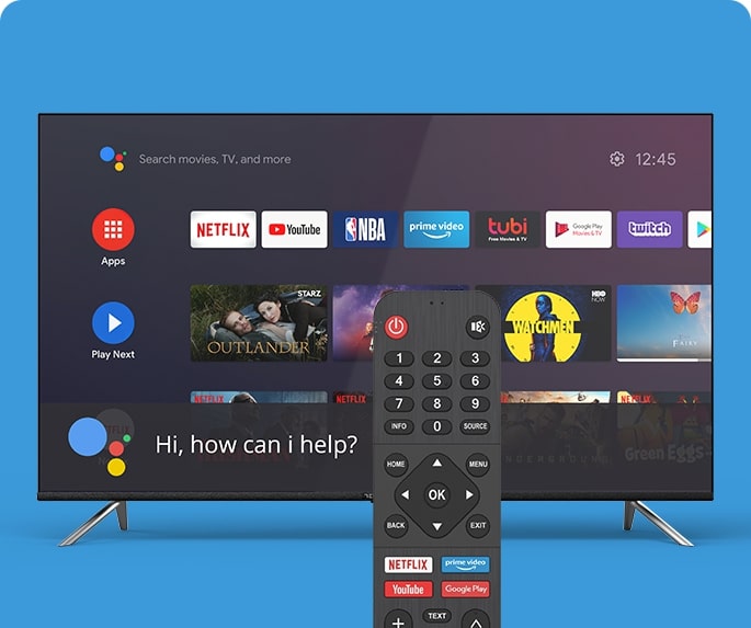 Ste v dvomih? Vprašajte svoj veliki zaslon! Pritisnite gumb mikrofona na daljinskem upravljalniku in vaš glas je zanj ukaz: s pomočnikom Google poiščite informacije o prometu ali vremenu, predvajajte ali začasno zaustavljajte priljubljene filme in serije, preiskujte internet ali nadzorujte katero koli povezano pametno domačo napravo.