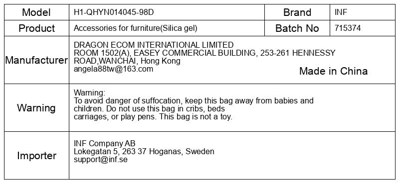 Opozorilo: Da preprečite nevarnost zadušitve, hranite to torbo stran od dojenčkov in otrok. Te vrečke ne uporabljajte v otroških posteljah, posteljnih vozičkih ali igralih. Ta torba ni igrača.