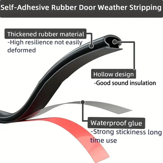 Močan lepilni trak: Naš tesnilni trak za vrata ima močan lepilni trak, ki zagotavlja varen in dolgotrajen oprijem. Odporen je na težke vremenske razmere in pogosto uporabo, ne da bi se odlepil, kar zagotavlja zanesljivo zaščito vašega doma.