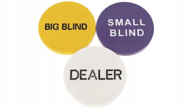 FUNKCIJSKI ŽETONI – v kompletu je komplet 3 funkcijskih žetonov, ki vam omogočajo vzdrževanje reda in reda v igri. DEALER je žeton delivca in se med igro premika v smeri urinega kazalca. SMALL BIND označuje prvega igralca, ki sedi z delivcem. BIG BLIND označuje drugega igralca, ki sedi za delivcem.