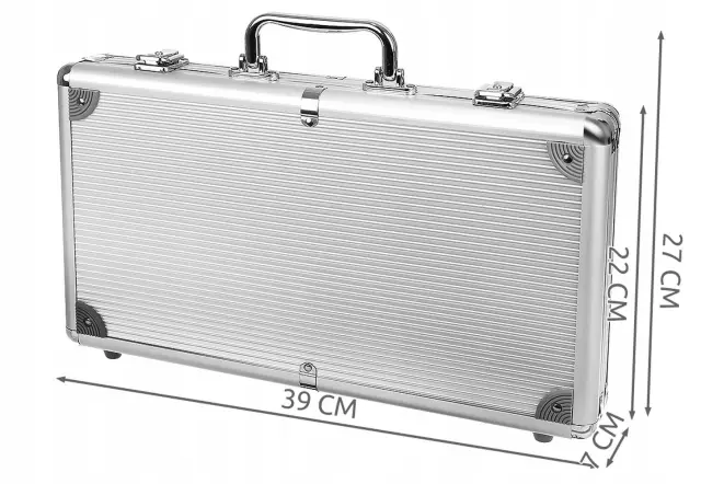 ALUMINIJASTI KOVČEK – poker set je pakiran v zelo trpežen kovček iz aluminija. Ima ergonomski ročaj, ki omogoča udobno nošenje in transport.