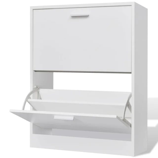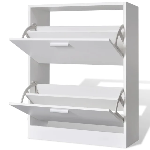 The Living Store Bela lesena omarica za čevlje z 2 predelkoma - Omarica Za Čevlje
