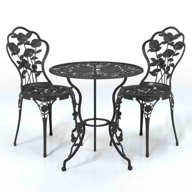 The Living Store Bistro garnitura 3-delna liti aluminij črna - Bistro Garnitura