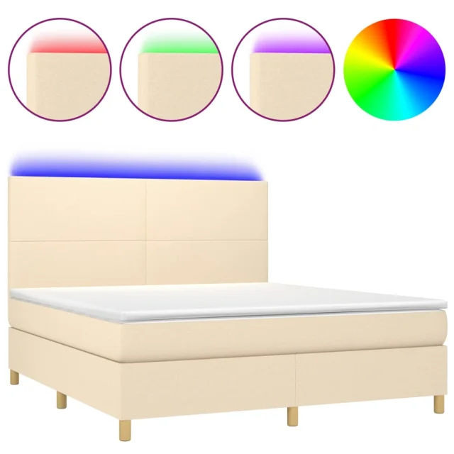 The Living Store Box spring postelja z vzmetnico LED krem 160x200 cm blago - Box Spring Postelja