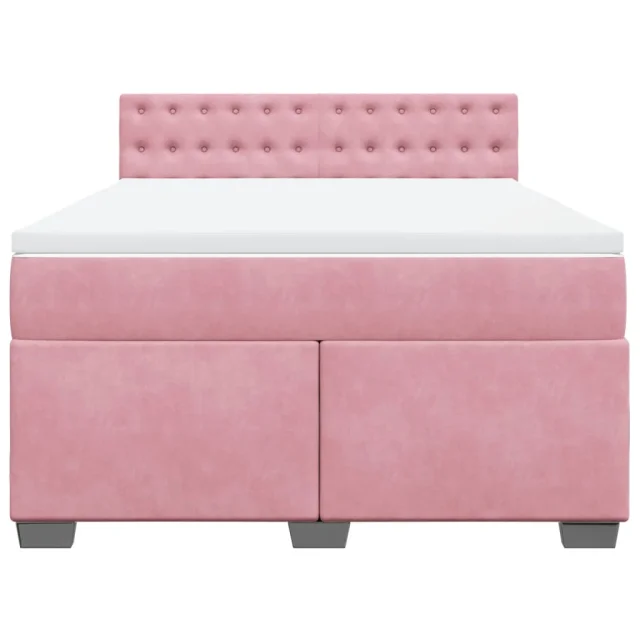 The Living Store Box spring postelja z vzmetnico roza 140x190 cm žamet - Box Spring Postelja