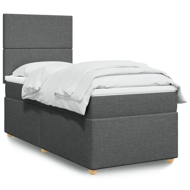 The Living Store Box spring postelja z vzmetnico temno siva 80x200 cm blago - Box Spring Postelja