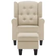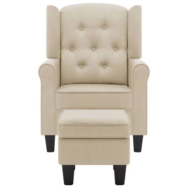 The Living Store Fotelj s stolčkom za noge krem blago - Naslanjač