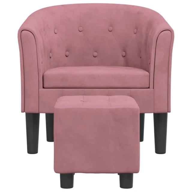 The Living Store Fotelj s stolčkom za noge roza žamet - Fotelj