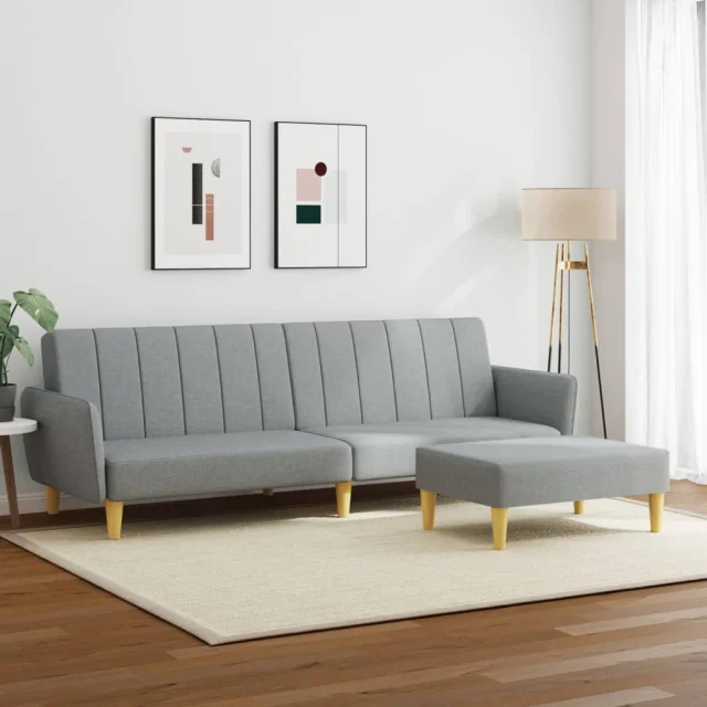 The Living Store Kavč dvosed s stolčkom za noge svetlo sivo blago - Kavč Z Ležiščem