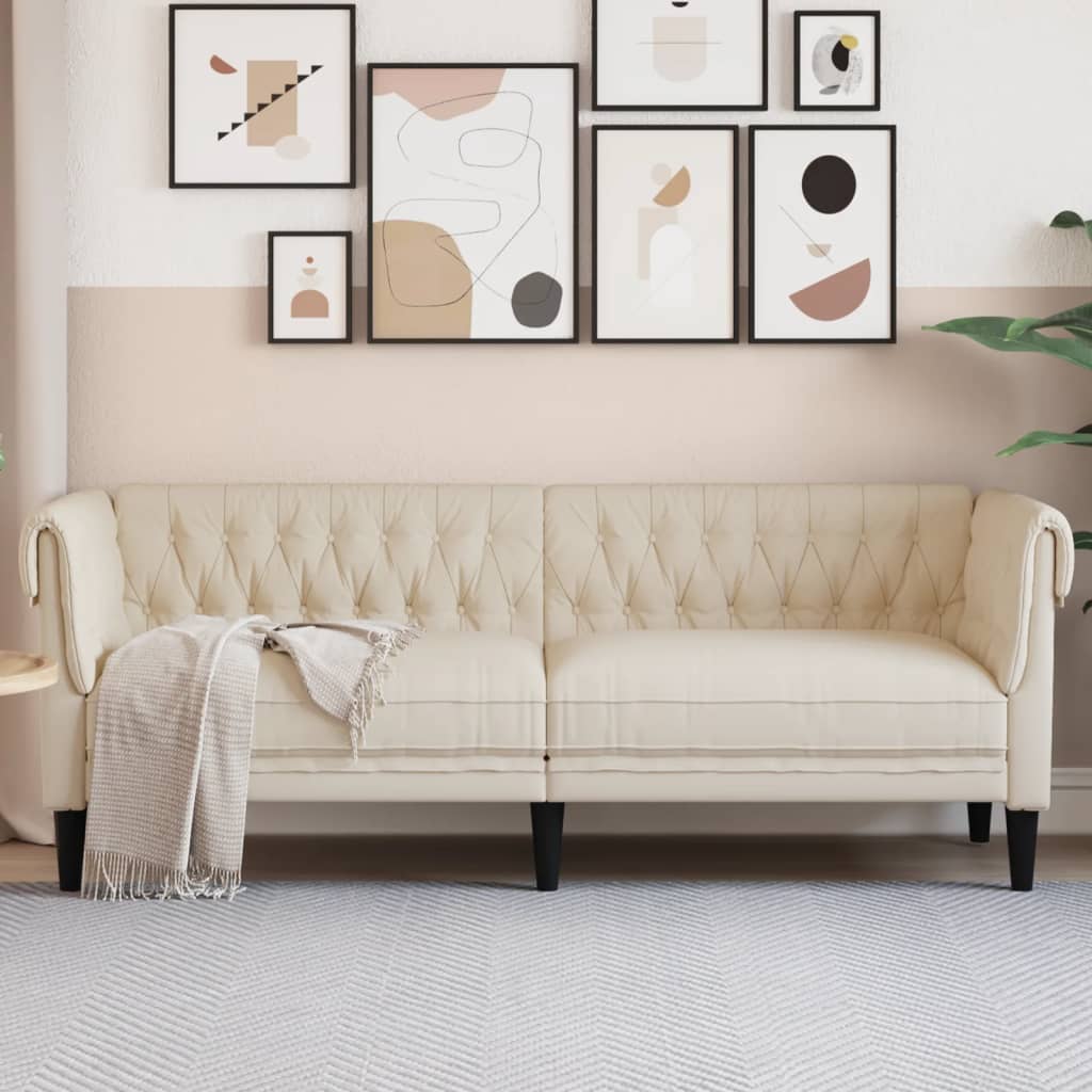 The Living Store Kavč trosed chesterfield laneno platno - Kavč Chesterfield