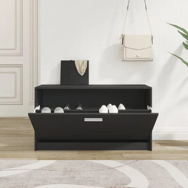 The Living Store Klop za čevlje črna 80x24x45 cm inženirski les - Klop Za Čevlje