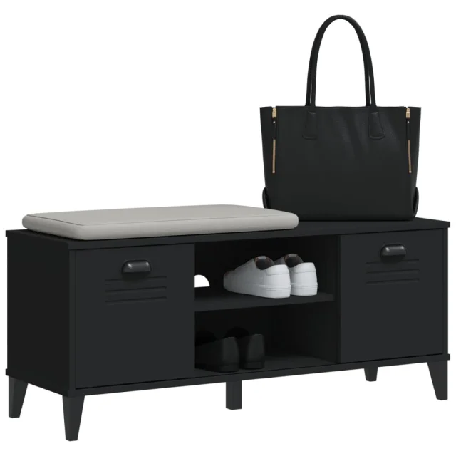 The Living Store Klop za čevlje VIKEN črna 106x35x45 cm inženirski les - Klop Za Čevlje