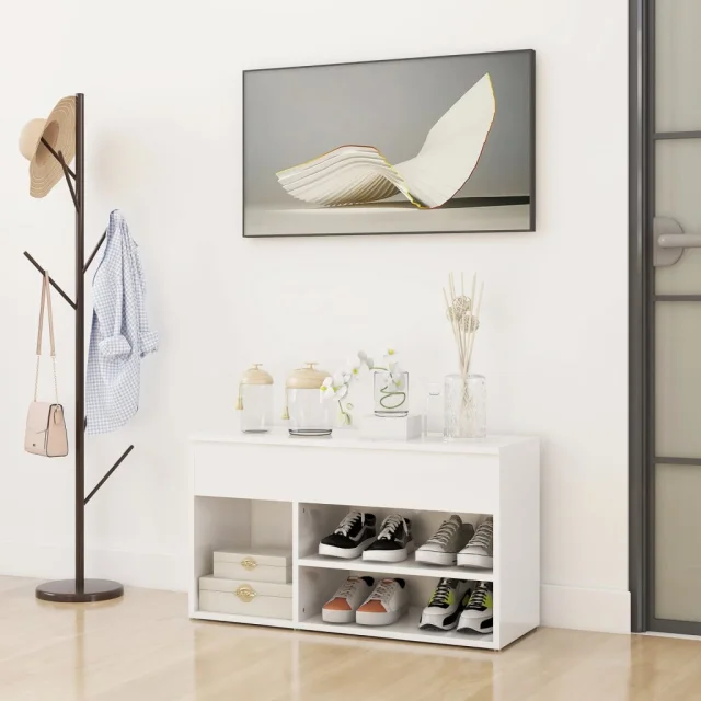 The Living Store Klop za čevlje visok sijaj bela 80x30x45 cm iverna plošča - Klop Za Čevlje