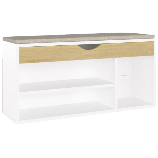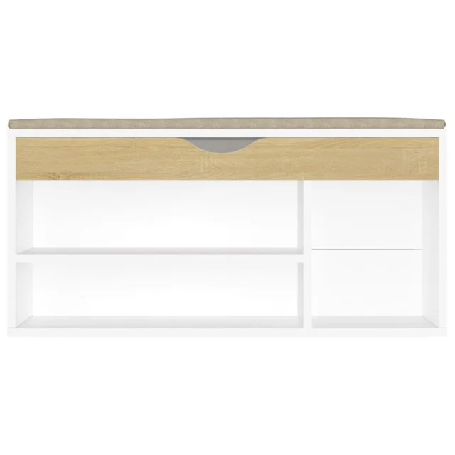 The Living Store Klop za čevlje z blazino bela in sonoma hrast 104x30x49 cm - Klop Za Čevlje