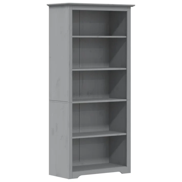 The Living Store Knjižna omara BODO siva 82x40x173 cm trdna borovina 5 polic - Knjižna Omara
