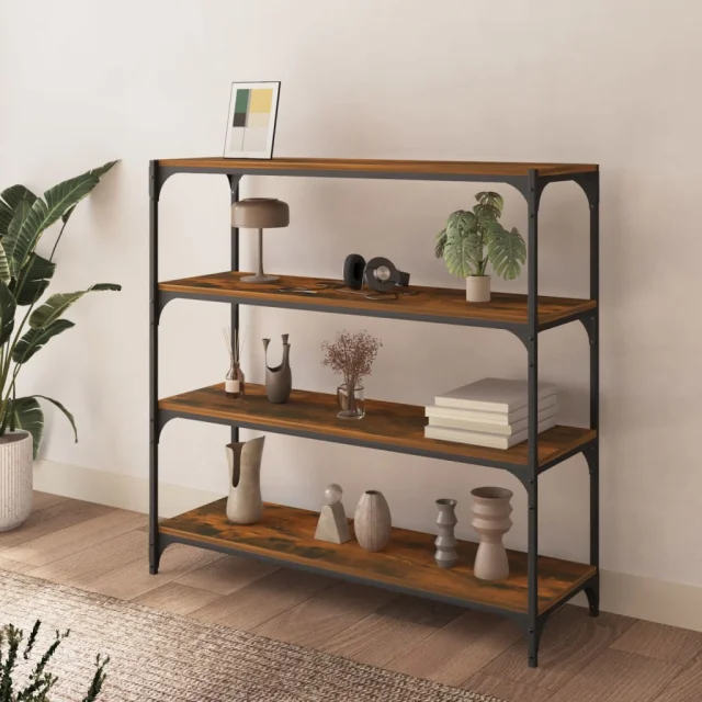 The Living Store Knjižna omara dimljen hrast 100x33x100 cm inž. les in jeklo - Knjižna Omara